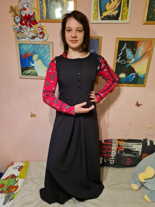 Наши барышни учатся в православной школе "Образ". В этом учебном заведении свой дресс код: длинные синие сарафаны. Такие сарафаны достаточно трудно найти в продаже. Но мы нашли в интернет магазине "Православная одежда "Мироносицы". И очень рады. Потому что сарафаны лёгкие, удобные, не мнутся.