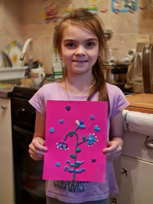 Малышки с поделками. Одну, правда, с цветочками, мы просто присоединили. Она из школы. Девочки вот миленько всё делают. А хулиганы, как возьмутся за что (Рома с Федей) и пиши - пропало! Рома вчера в Карину кинул такими шариками с колючками, это конструктор, два шарика запуталось у Карины в волосах и пришлось клок вырезать. Жаль, не сфотала. На вид, вроде, наборы такие безобидные, но, если они оказываются в руках у Ромы и Феди......))))
