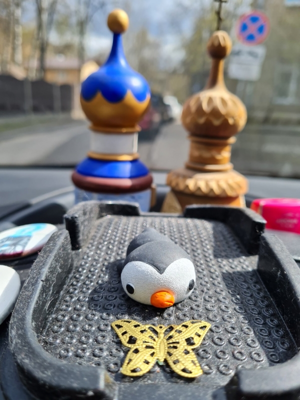 Помните, вчера я поделилась видео нашей коллекции антистрессов? Сегодня сажусь в машину, а машина у нас одна на двоих с водителем фонда и по утрам я его прошу отвозить детей в школу в Малаховку, смотрю, антистресс уже на торпеде лежит)))) они везде)))) ааа)
