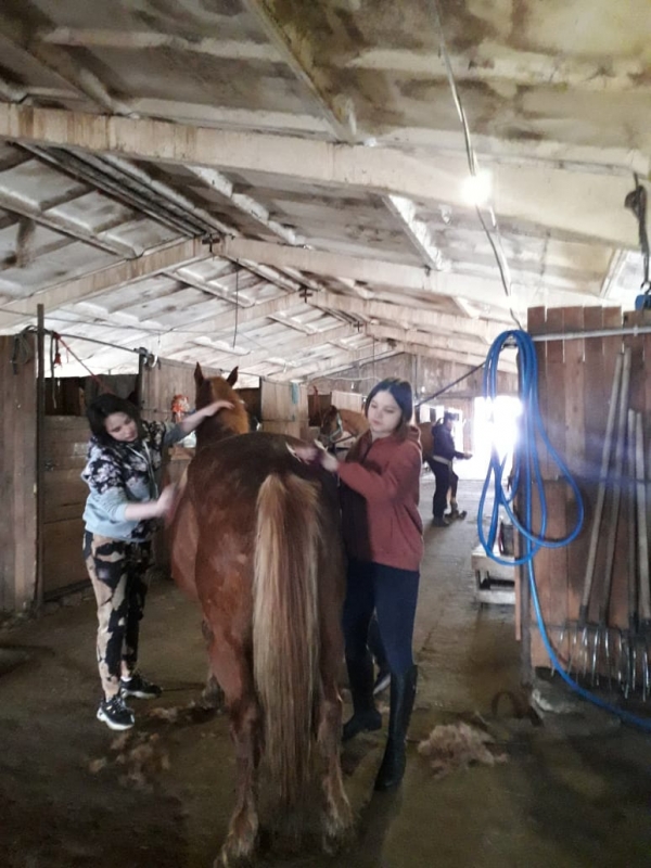 В этот раз ездили Богдана (это наш главный ответственный за лошадь, профессионал), Алина и Стасик.