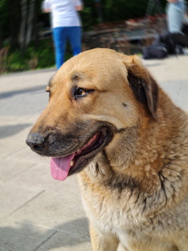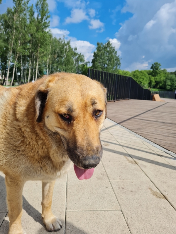 Собака дошла до берега и улеглась. Она долго созерцала озеро. Наверное, вспоминала молодые годы, проведённые где-то здесь. Потом собака развернулась к нам, ещё немного посмотрела на нас, прям, как старичок, которого радуют детишки. И ушла в обратном направлении. Казалось, она улыбается...