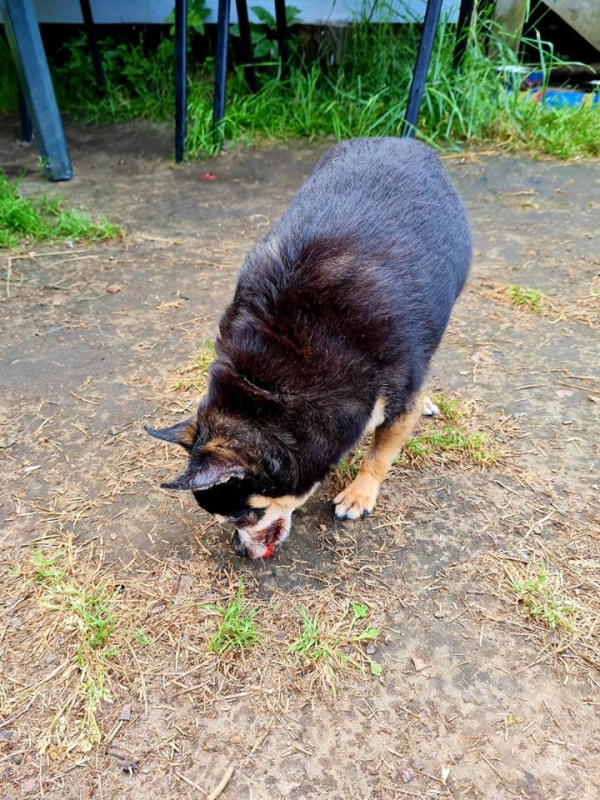 Зюзю теперь уже всё фиолетово. Артем утром его выносит на улицу, под нос ставит тарелочки с водой и кормом. Зюз ест, пьёт, потом ложится в тень на свою подстилочку и редко встаёт, чтобы просто постоять и позвать Артёма. Лаять у него уже не получается, лай похож больше на чихо-писк.