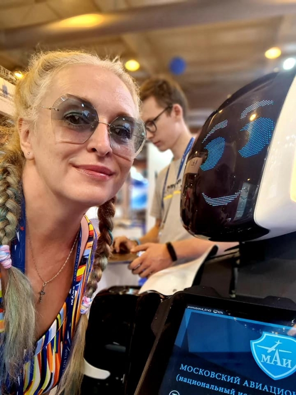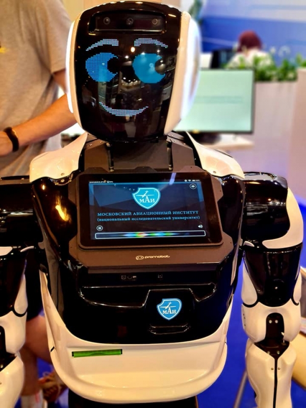 С каким милахой мы познакомились в нашем павильоне F3, на стенде МАИ. Робот Марк))) Он сказал, что ему очень приятно со мной делать селфи)