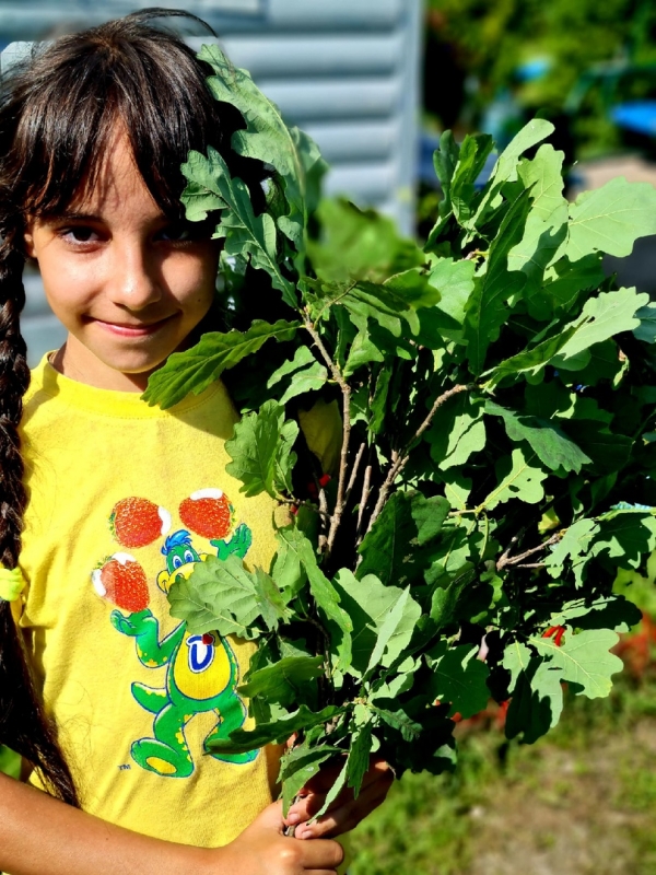 У нас на участке шикарные берёзы и дубок. Те, кто ходят в баню, знают, как полезна берёза для кожи, дуб для суставов. Особенно хорошо веники из экологически чистых мест.