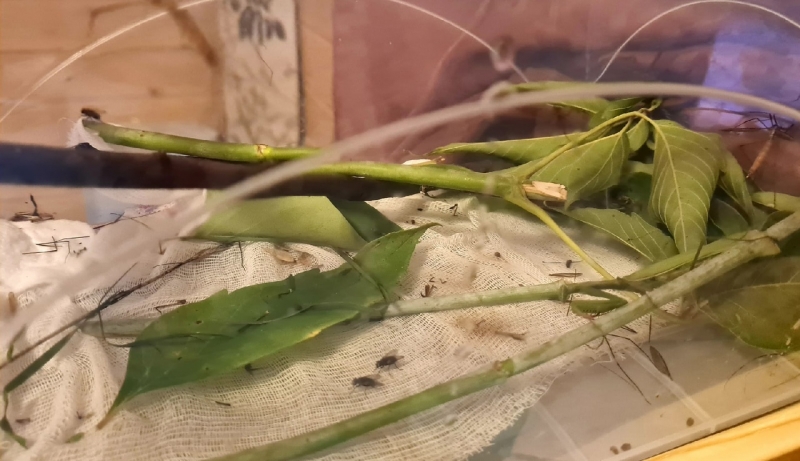 Вечером обычно ловлю много мух и комаров Герману на завтрак. Когда я просыпаюсь, в террариуме лежат только крылья и лапки.