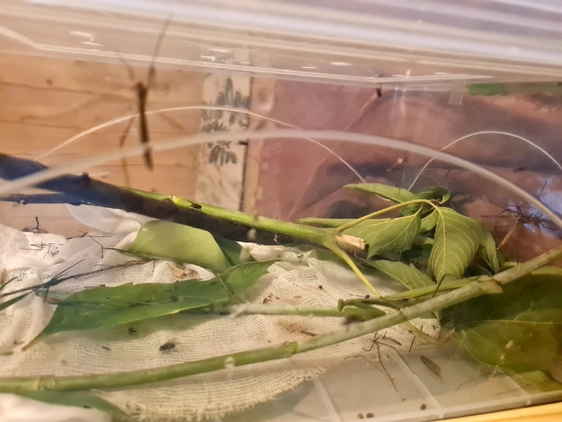 Если богомол доживет до нашего отъезда, придется брать его с собой. Чем его кормить в городе, ума не приложу. В квартире нет ни мух, ни комаров, ни кузнечиков. Представляю, как быстро меня увезут в сумасшедший дом, если я буду бегать по улицам за мухами)))