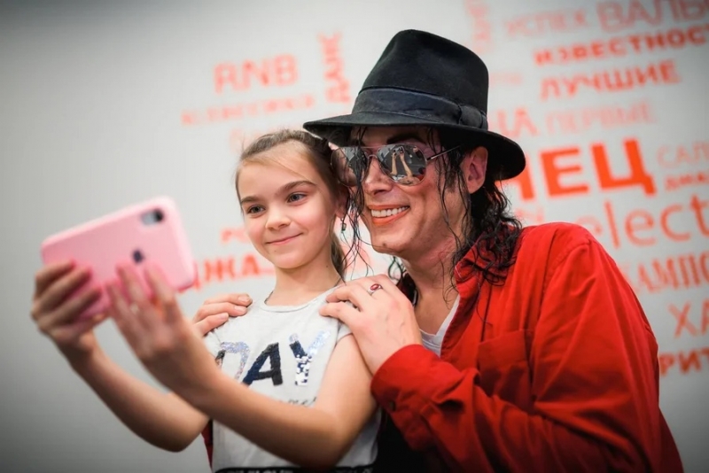 Дуся, Карина, Стас в "Имена Продакшн" @imenapro на встрече с двойником Майкла Джесона. @paveltalalaev79