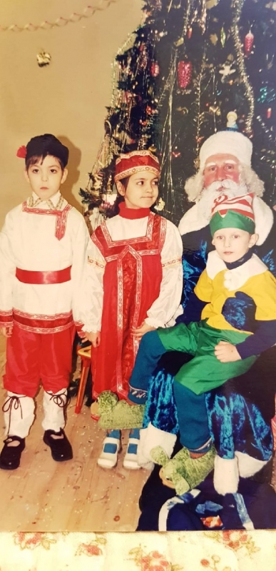 Я нашла фотографию, на которой мои дети Сашенька, Серафим и Лёшик маленькие, мы пришли на ёлочку, которая была, как я помню, при храме великомученика Пантелеимона в Жуковском. Серёжа, кстати, тоже ходил, но я этой фотографии не нашла. У него был костюм Звездочета, который потом перешел к Лёшику. Мы жили так скромно, что костюмы одевали на елку одни и те же несколько лет, пока они совсем не становились малы. Но ёлки должны были у детей быть! Как и положено, с Дедом Морозом, с подарками. Такая традиция перешла мне от моих родителей, бабушки, дедушки. И я считала каждый годик, в который дети еще шли на елку в костюмах. Это значит, что они еще малыши.... Сначала перестал ходить Серёжа, потом Саша и Серафим, потом Лёшик..
