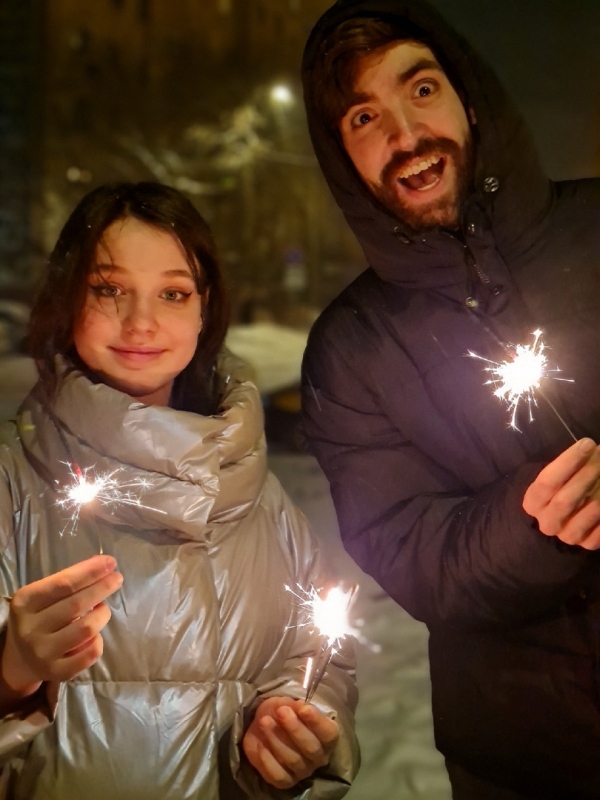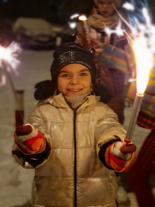 Новогодние огни, петарды и фейерверки. Если я отвечаю за стол, то это дела папы и мальчиков. Я не люблю бабаханья, но хожу со всеми, слежу за детьми, которые от всего этого разноцветия и грохотания в восторге! В этом году к нам присоединился Дом Милосердия, которому накануне благотворитель Александр подарил огромный салют. Бабахнули на славу)))) Дом Милосердия, кстати, Александру передает большое спасибо!