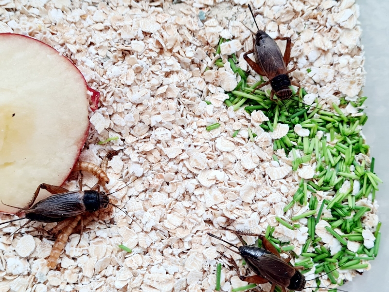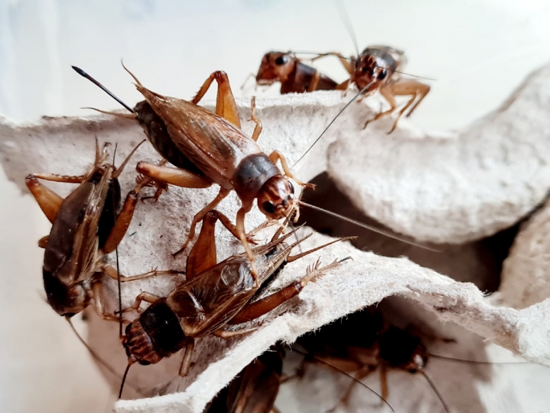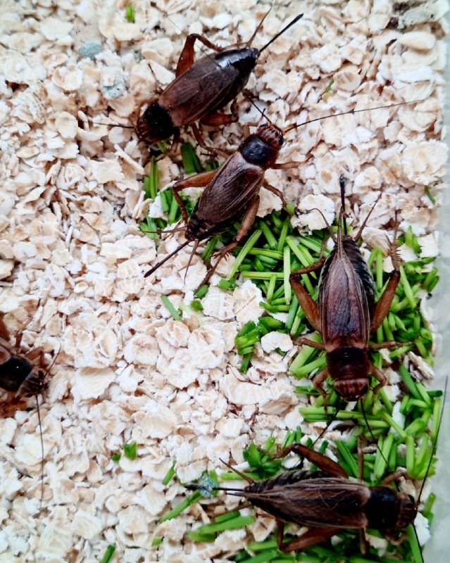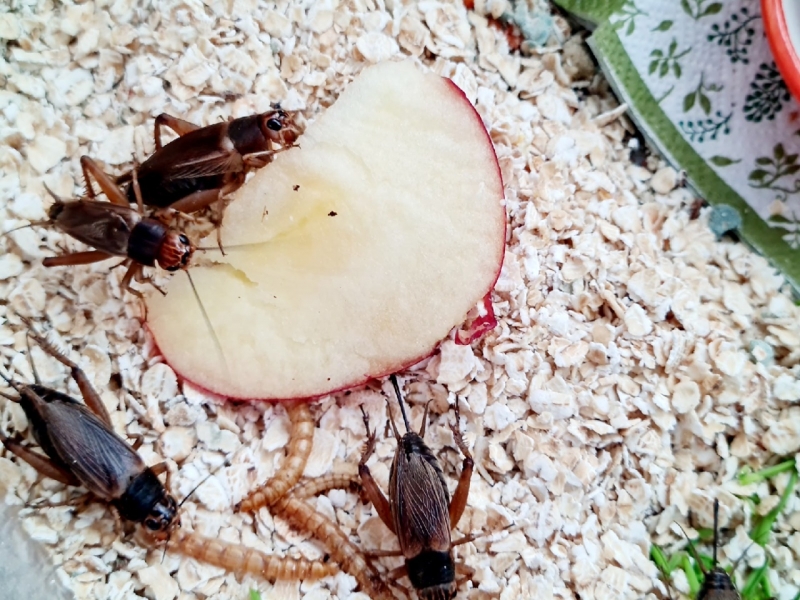 Говорите, что хотите, но сверчки - существа необыкновенные. Если ты очень устал и нужно, чтоб мысли отвлеклись на что-то совершенно не относящееся к текущим делам и проблемам, подойди к сверчкам. Может, наши такие домашние, потому что мы сами их вырастили? Как только открываешь их коробочку, все начинают весело сверестеть крылышками, вылезают из домиков и трогают мою руку усиками. Самые смелые даже залезают и сидят. Они не противные, не кусаются. Очень мило пасутся. Минут 10 с ними провёл и чувствуешь, что отдохнул!