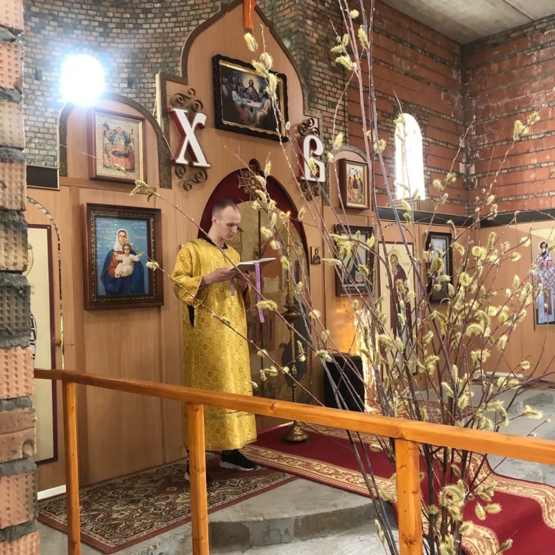 Когда дети радуют... и понимаешь, что жизнь продолжается)))) Мои Алексей и Сима в храме г. Самара. Благословил грядущий во имя Господне!!! А Монти принесла вербочку...