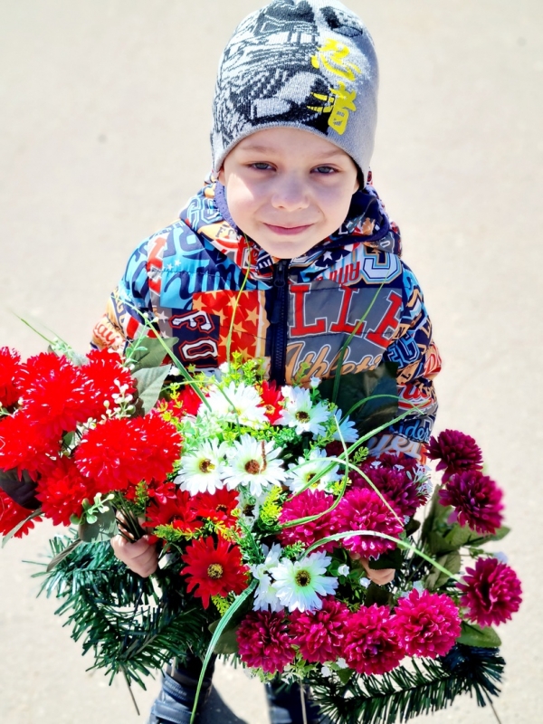 Федя сегодня нёс цветы для своей мамочки. Я его вторая мама. А первая уже Там...