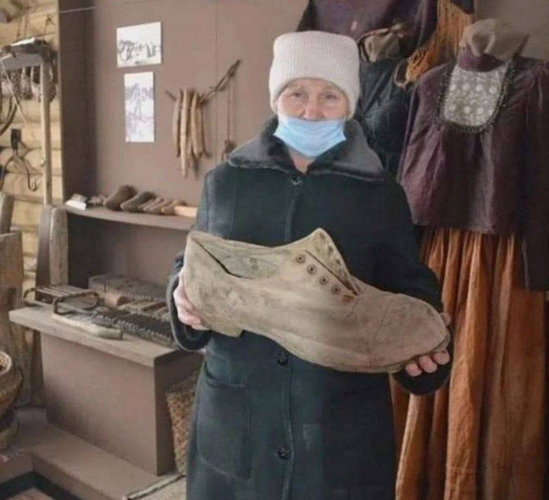 Подошва этого ботинка стоптана, и это говорит о том, что в нем ходили, а значит в селе жил настоящий великан – человек-гора.