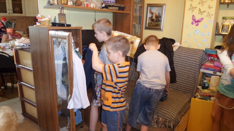 Итак, в нашей семье появился Сёмочка. Как и все наши приёмные дети, появился он у нас чудесным образом. Но это совсем другая история, о которой мы непременно расскажем. Но, как только он появился, назрела необходимость подвинуться на одно место. Всем. И взрослым, и детям и даже собакам и котам. Сёмочка ведь мальчик большой и одной кроватки ему явно не достаточно. Нужно где-то хранить одежду, учить уроки. Думали мы думали, как всем подвинуться и придумали совершить великое переселение. Раньше Дуся у нас, как принцесса, спала в отдельной комнате. Так получилось еще с того момента, когда мы ее забрали к нам. Дуся очень нуждалась в покое, потому что была неимоверно издёргана. Это понятно, ведь ребёнок с рождения до 7 месяцев жил в наркоманском притоне. Но прошло почти два года. Малышка подросла, окрепла и всё чаще стала играть со старшими детками. Самые нежные отношения у неё сложились с Ромой. Вот мы их и решили объединить, подселив заодно Рому поближе к папе)))), который один из немногих, кто имеет на него авторитетное влияние.