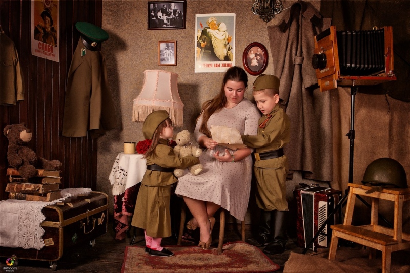 Мы случайно узнали о том, что у нас в городе проводится фото сессия к 70 летию Великой Победы. Решили хоть не всех (очень дорого), но хотя бы троих наших деток сфотографировать на фоне декораций тех далёких военных лет. По-моему, получилось замечательно. И детям останется память.