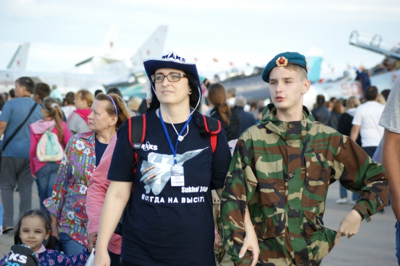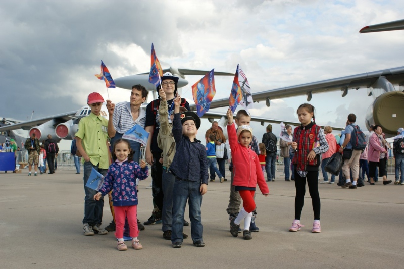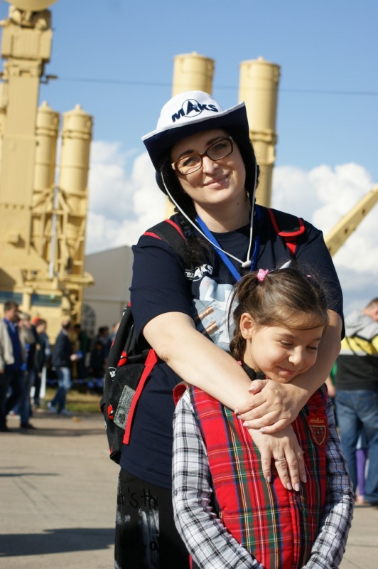 Наши дети, как потомственные жуковчане, очень любят авиацию. Особенно Дуся. Если она видит пролетающий в небе самолёт или вертолёт, кричит "ура", машет "привет" и говорит, что она тоже будет летать. Естественно, МАКС дети ждали с нетерпением. Таким большим составом, как в этом году, мы посетили МАКС впервые.