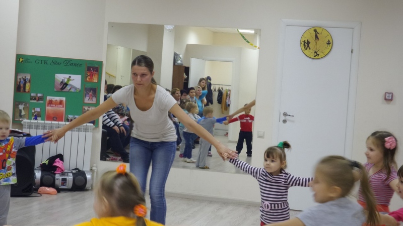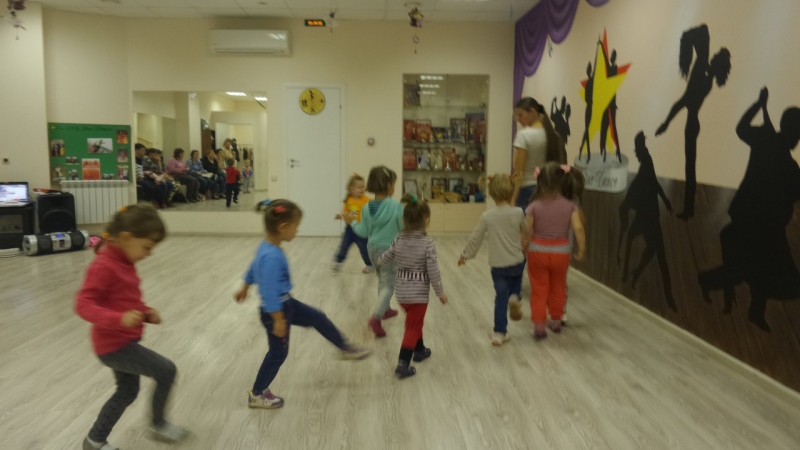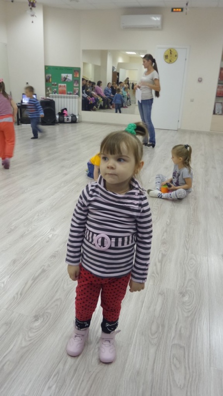 Вначале она очень растерялась, так как оказалась самой маленькой, а другие дети чужие и шумные. Но потом влилась в коллектив и стала танцевать вместе со всеми))))