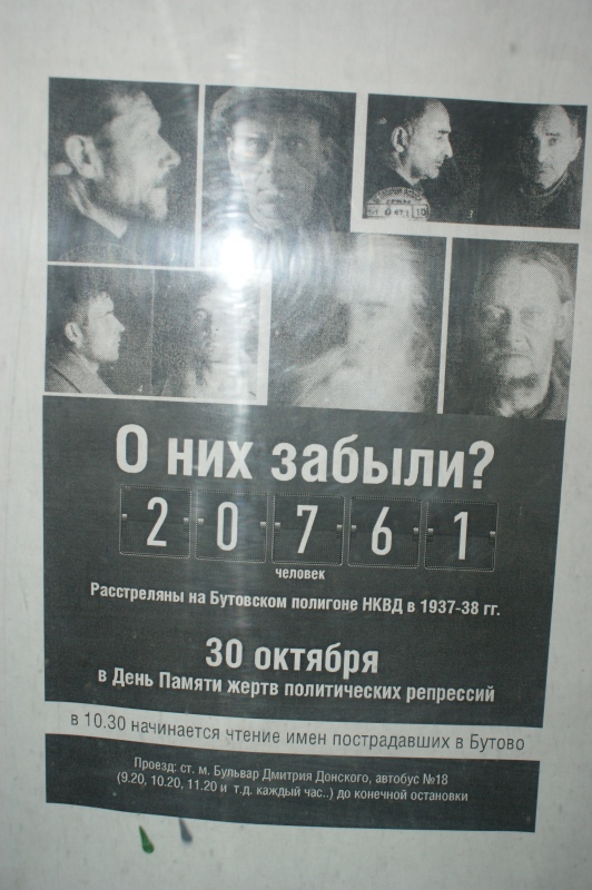 Всего на Бутовском полигоне с августа 1937 года по октябрь 1938 года были расстреляны 20 761 человек. Их могилой стали 13 рвов, выкопанных местными жителями с помощью бульдозера, общей протяжённостью 900 метров.
