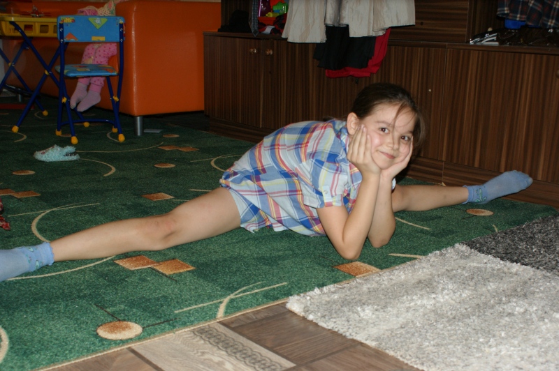 У нас личные трагедии. Богданку не взяли на какое-то соревнование в Белоруссию. Всему виной то, что в прошлом году из-за сломанного пальца и операции, мы пропустили несколько месяцев занятий по эстетической гимнастике. Богданка делает свою мордочку такой несчастной бурундучьей (наш чиподейл) и начинает причитать. К причитаниям, обычно, присоединяются жалобы на Ромку, который дал в глаз, на Киру и Малю, которые лазиют по Богданиным полкам, ну и вообще, на жизнь))))) Приходится устраивать олимпийский показ дома. Ребёнок сразу веселеет и вытворяет всякикие сложные трюки. Для нас, домашних, Богданка всегда чемпион.
