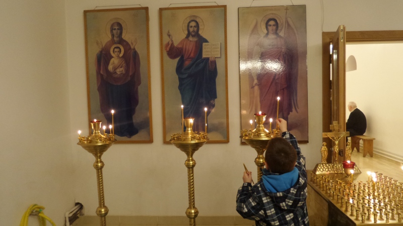 Рекомендованных мне ежедневных 5 км мы не прошли, зато зашли в храм Архангела Михаила, где шло Всенощное Бдение под праздник Сретения Господня. Постояли немного, помолились, написали записочки и пошли ходить дальше.