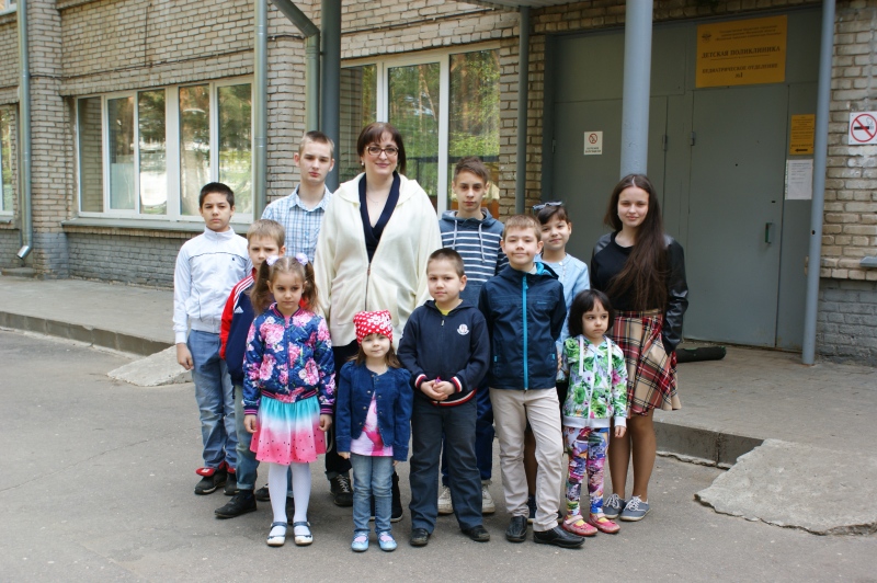 Дети-сироты, которые воспитываются в приемных семьях, должны проходить раз в год диспансеризацию. В этом году мы "уменьшились" на одного человека, так как Алесе исполнилось 18 лет. Тем не менее, 10 детей это большая компания! Ну, представьте себе, занимает очередь один человек, а проходит десять! Правда, конечно, мы стараемся всё делать оперативно, но со стороны других родителей чувствуется недовольство. Нам то и дело говорят: "Пропускайте наших детей через одного!" Но это сделать невозможно, так как мы идём сцепкой, чтобы не сбиться и не растеряться. Больше всего понравился один мужчина, который подошел к кабинету врача и не знал, что мы все вместе. Когда я вышла с последним звеном, остальные дети поднялись со стульчиков и вся наша толпа двинулась от одного кабинета к другому. Мужчина удивлённо спрашивают: "А что это все уходят? Не принимает врач?"