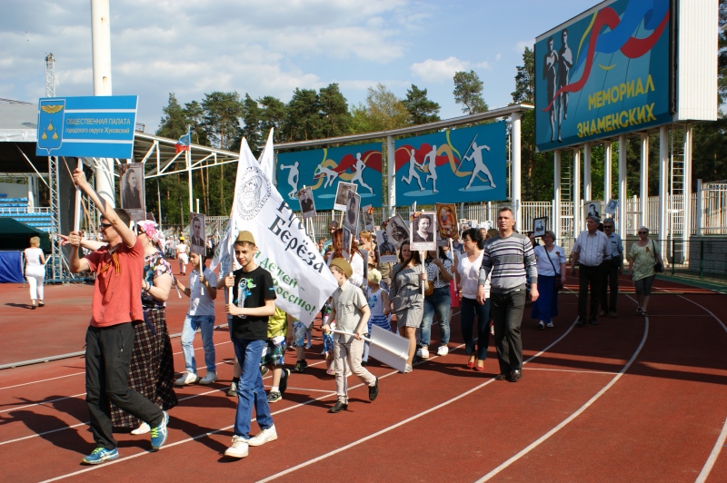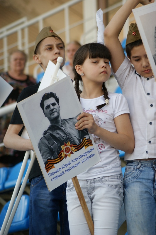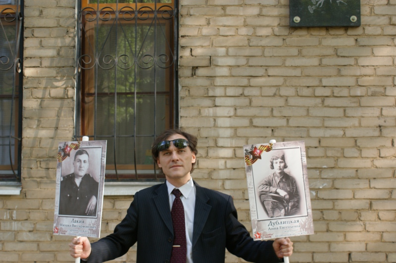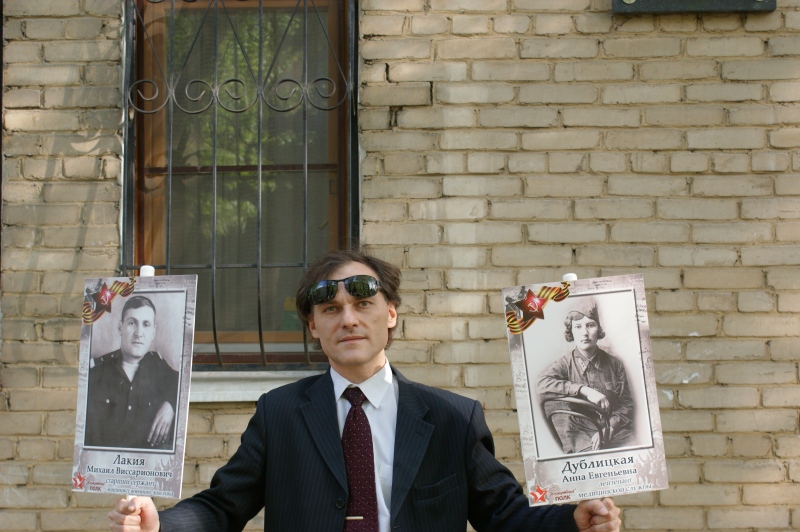 Ещё мы несли фотографии моих дедушки Юры и бабушки Шуры Гарнаевых. Дед Юра был Участником ВОВ, а бабушка Шура операционной сестрой в военном госпитале, который находился у нас в Жуковском в школе № 1. Работала в палате смертников. По приказу Сталина выхаживала Людмилу Павлюченко после ранения (в московской квартире Людмилы), я об этом только недавно узнала от своего дяди Славы. Были у нас фотографии моего прадедушки Данилы Титова (отец бабушки Дуси), который прошел почти всю войну и её брата Ивана Титова, который пропал без вести. Вечная Память нашим родным! Низкий поклон! И спасибо за жизнь!