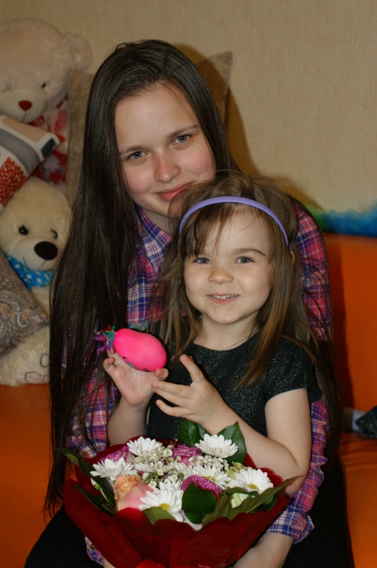 Сегодня Дусеньке исполнилось 4 годика. Так быстро летит время. День рождения мы отметили маленькой компанией (Дуся, мама, Монти, Рома, Алеся и Маля), так как большие детки учатся, а некоторые малыши болеют. Мы сходили на мультик "Angry birds", погуляли, побегали за мыльными пузырями. Ну а потом, конечно, пили чай с прекрасным тортом, который нам заказала наша дорогая благотворительница Леночка Тимакова. Не обошлось, конечно, без детской дискотеки ("тека", как говорит Дуся), повлекшей за собой безудержное веселье. Мы все очень любим Дусеньку и хочется, чтобы наша малышка всегда была такой жизнерадостной, весёлой и, конечно, здоровой. Чтобы всегда рядом с ней были добрые люди. С днем рождения, малышка!