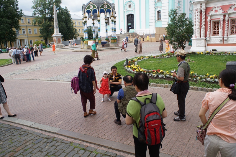 Накануне праздника св. прп Сергия мы пришли поклониться его святым мощам. Народа в Лавре было много. И паломники, и туристы. Пока мы стояли в очереди, чтобы приложиться к мощам, Дуся очаровала китайских туристов. Каким-то образом, она нашла с ними общий язык)))) Китайцы по очереди начали с малышкой фотографироваться, Дуська смеялась и отвечала по-русски на китайские вопросы)))