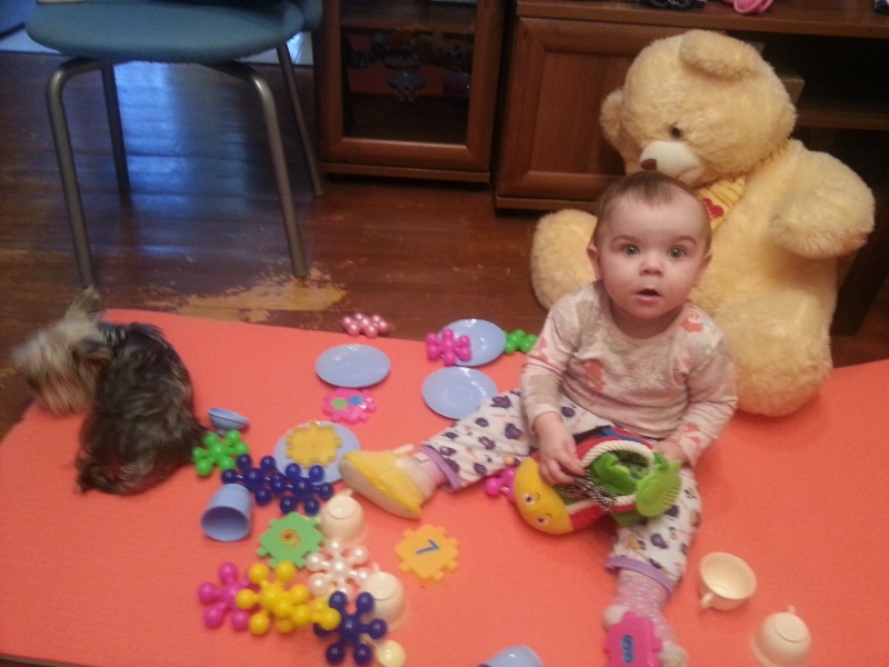 Дианочка Дусечка очень общительный ребеночек - как только она зашла в квартиру и услышала звуки музыки, стала танцевать. Она привыкла быть одна, поэтому совсем не требовательная. Любит играть и смотреть книжечки. Умная - быстро запоминает слова и движения, играет в ладушки и сороку.
