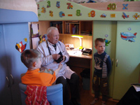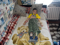 Никитушка наш — очень больной ребеночек. У него порок сердца, была операция. В недалеком будущем предстоит обследование, так как профессор сказал, что кардиограмма у Никиты плохая. Еще у малыша "куриная грудка", что подтверждает то, что у мальчика был рахит (возможно, и дистрофия). Никитка очень слабенький, быстро утомляется, начинает плакать. В то время, когда ему делали операцию, его маму лишили родительских прав. Он, видимо, так переживал это, что просто не хотел жить после операции. Но одна добрая тетя все время сидела у его кроватки и внушала ему, что у него будет все хорошо и мама придет. И тогда Никитка решил жить дальше. Он очень хороший, наш милый маленький Чебурашка