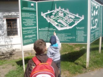 Батюшка, благословите! У нас такие дети замечательные. И, самое главное, верующие и не боящиеся своей веры. Иногда, конечно, бывают всякие "задвиги" переходных возрастов, стеснений перед сверстниками, но, в основном, дети всегда открыто исповедуют православную веру, причем насильно к этому мы их не толкаем. Все знают, что у батюшки надо взять благословение. И не постесняются броситься к священнику ни в храме, ни в любом месте, где бы батюшку не увидели. Какое счастье, что сейчас такое свободное прекрасное время для верующего человека. Мы молим Бога, чтоб наши дети не пережили тех гонений, которые достались нашим мамам, бабушкам и дедушкам. Нужно благодарить за такое время Господа и пока есть возможность, ходить в храм. А вот Артем показывает на схеме монастыря то, что он понял, увидев макет.