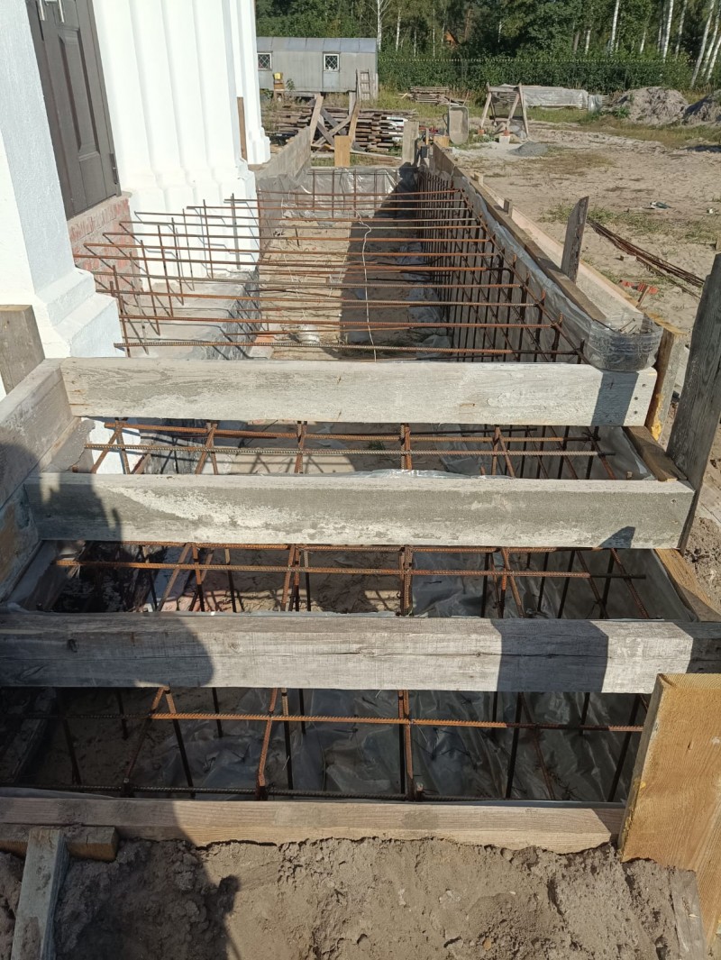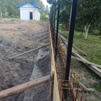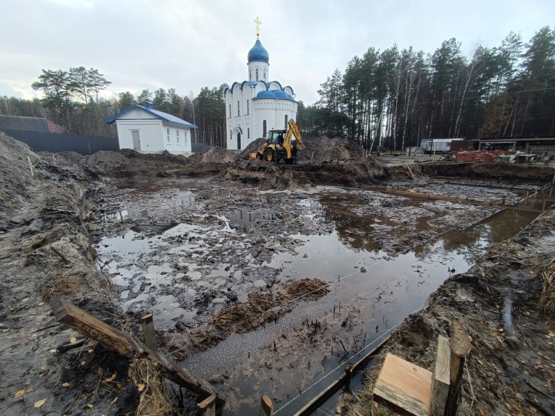 В уходящем году успели с Божией помощью залить подушку под фундамент, сделать опалубку под фундамент. В ближайшее время планируется обвязка арматуры.