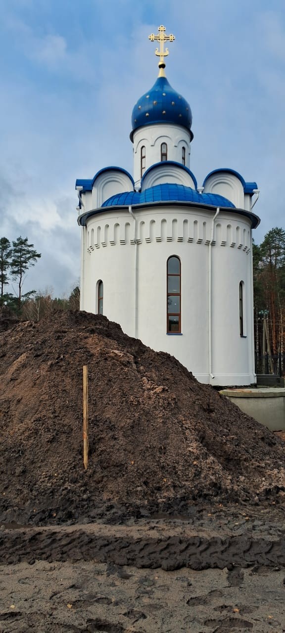 Сегодня засыпали и уплотнили песок под фундамент дома причта.
