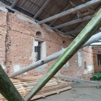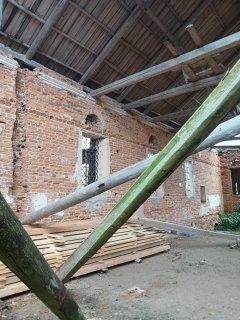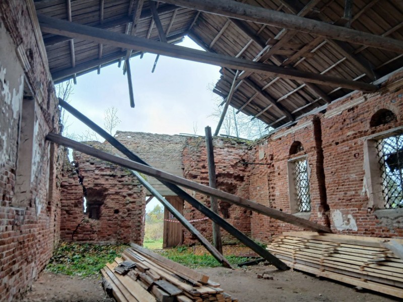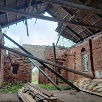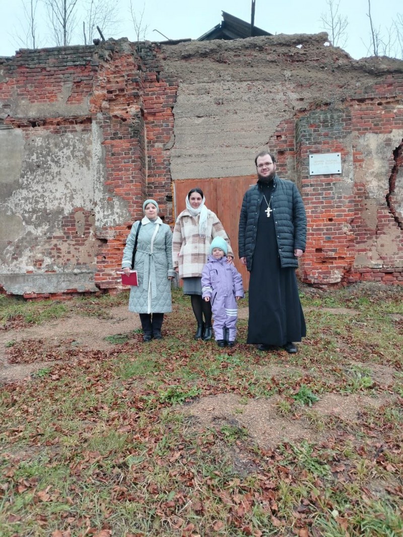 В настоящее время мы реализуем проект по постройке теплого деревянного одноэтажного храма в деревне Чижево. Данный вопрос очень актуален для местных жителей: процесс восстановления каменного храма в честь Покрова Пресвятой Богородицы продолжительный и сложнореализуемый, а верующим людям требуется место для собраний, совместных молитв и богослужений уже сейчас. В настоящий момент каменный храм находится в плачевном (разрушенном) состоянии, где невозможно совершать регулярные богослужения и собираться общине: остались полуразрушенные стены из битого кирпича. В 1791 году храм был построен на месте прежней деревянной церкви по заказу помещика В.В. Энгельгардта. В восточной части храма находится усыпальница, где похоронены князь В.В. Энгельгардт и отец Григория Александровича Потемкина Александр Васильевич Потемкин. В марте 1932 года храм прекратил свое существование, здание использовалось как колхозный клуб.