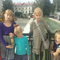 11 октября 2014г. вещи для новорождённого, дублёнку старшей девочке, брюки осенние и футболку для кормления маме, нарядные колготы для средних девочек, книги, развивающие игры. Отправитель: тротер