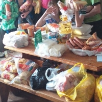 14 сентября 2017г. передано лично в руки-1) сахар - 6 кг, гречка 800 грамм - 5 шт., рис - 800 грамм - 5 шт, масло растительное 0,8 л - 10 шт., чай - 4 шт. по 100 пакетиков, конфеты, пастила, печенье, бананы, яблоки, 2 коробки конфет, шоколадки большие 15 шт.2) порошок Тайд автомат 5 шт. по 3 кг, кондиционер для белья Вернель 5 шт. по 0,8 л, губки для мытья посуды и другое для кухни 3) тетрадки 12 листов в клетку и линейку 20 шт., папки для труда 2 шт., папки для тетрадей 6 шт., цветная бумага для труда 4 шт. Отправитель: Александра Евгеньевна