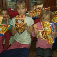 23 декабря 2013г. В посылке:одежда для младенца на 3-6 мес,шапки детские 0-12 мес и 2-4 года,одежда детская на 2-3 года,канцелярские принадлежности,игрушки детям,резинки и заколки для волос,Детская зубная паста и щетки,колготки детские на рост 152,сладости детям. , подарок Ангелу Отправитель: Благотворитель