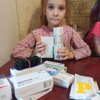 8 февраля 2014г. шторы и струнные карнизы (в письмах они просили), продукты (дет мясное пюре, тушенка, сгущенка, сухофрукты, сладкое), немного одежды для маленьких, книги, канцелярские принадлежности, зимние ботинки мальчику как просили в письме, стир порошок и средства гигиены. Итого - тоже 2 посылки около 25 кг. Отправитель: Мади Людмила