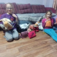 29 декабря 2014г. теплые пижамы детям, колготки, ранец школьный, носки мужские, толстовка маме, детские туфли, игрушки и сладкие подарки., подарок Ангелу Отправитель: Ирина