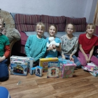 26 декабря 2022г. В этой посылке одежда для детей и школьная форма для девочек, игрушки, шоколад и конфеты, средства гигиены Отправитель: Екатерина