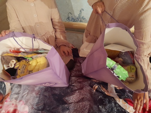 Здравствуйте, дорогие наши Оксана Михайловна и все работники фонда Русская берёза! Мы сегодня получили посылочку от Елены, благодаря группе "отдам добрым людям". Она прислала одежду Василисе, игрушки. Огромное спасибо, вещи очень хорошие. Ещё получили посылочку от Надежды. Она прислала одежду и обувь Василисе и Наде. Спасибо огромное. Вещи супер, девочки очень рады. Еще сегодня получили посылочку от Марины. Она прислала Наде кулон, огромное спасибо. Еще получили гостинцы, очень много, от Даны, она заказала на озоне, очень много печенья, конфеты. Огромное спасибо и низкий поклон, девочки очень рады просто в восторге. Храни вас Господь.