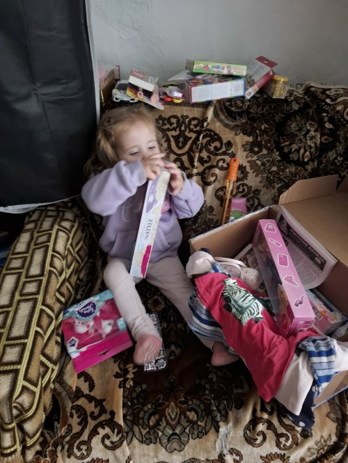 Здравствуйте, наши родные, Оксана Михайловна, сотрудники фонда и благотворители. Получили посылку от Светланы. В посылке была одежда и туфли для меня, для дочери игрушки, книжки, одежда для дочери, сладости для сына, крупы, мыло. Спасибо вам огромное за поддержку для нашей семьи. Храни вас Бог.