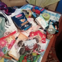28 июня 2017г. крупы, сахар, соль, мука, сладости, консервы, сухие супы, подгузники большая пачка, детские консервы мясные, пюрешки фруктовые, молоко малютка 3 упаковки, 3 конверта, мыло, шампунь, гель для мытья ребенка. Отправитель: Евгения