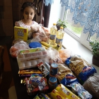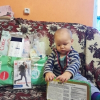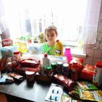 27 марта 2017г. пачка подгузников, детское питание, немного бакалейных продуктов, средства гигиены маме и дочке, вещи дочке. Отправитель: Евгения