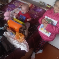 22 декабря 2020г. посылки с детскими вещами на девочек и продуктовым набором к Новому году Отправитель: Анна