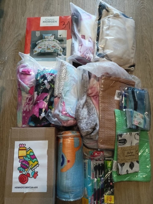 1 июня 2025г. вкусняшкиПостельное белье и к нему в комплект плед-покрывало, кухонные полотенца, зубные щётки и паста, платье и различные одежда для девочек. Отправитель: Ирина