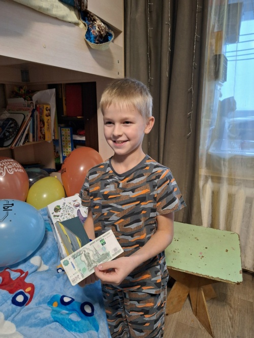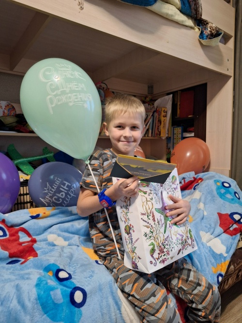Здравствуйте, все работники фонда " Русская берёза " и Оксана Михайловна! Огромное спасибо за отправленную вами посылочку на день рождения Артёма. Ему сегодня исполнилось 9 лет и очень вовремя пришел подарок для него. Всё дошло в целости, много вкусных конфет, духи, и... небольшой конвертик от доброй феечки Оксаны, Артём, обалдел от такого подарка. Спасибо огромное от него за такую заботу!