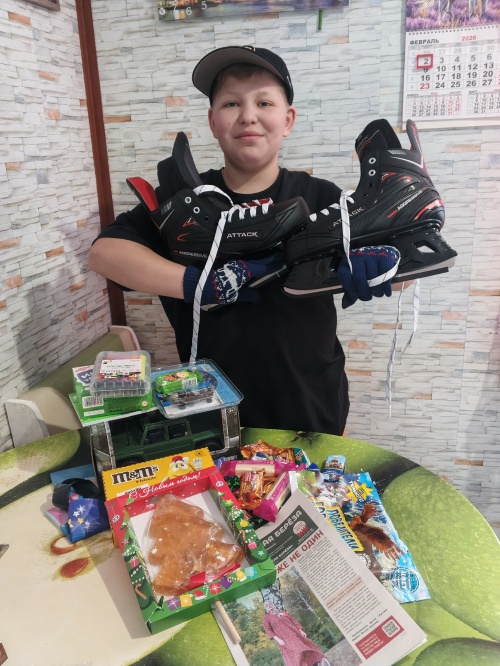 Здравствуйте, фонд Русская береза, все благотворители. Пишу вам с такой радостью, а как сын рад, нет слов. На новый год пришел подарок ему от благотворителя Николая Горева. Макар занимается футболом и хоккеем, Николай прислал бутсы и носки специально для бутс. Теперь будет сын заниматься в новых, а то были старенькие, уже потрепались. Спасибо огромное за такой подарок, просто сказка, давно мечтал. Так ребенок рад. Низкий вам поклон. Всех с наступающим праздником поздравляем, счастья радости желаем!!! Успехов вас во всех делах и процветания. Еще раз огромное человеческое спасибо от нашей семьи.