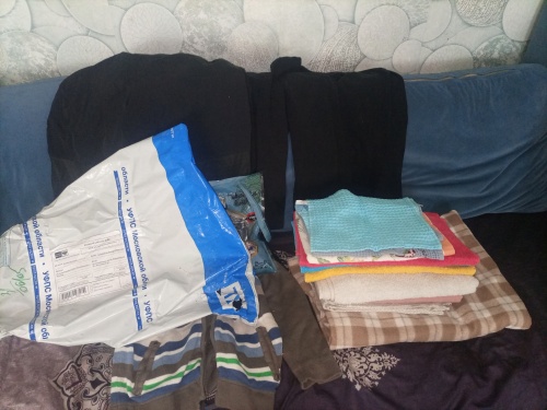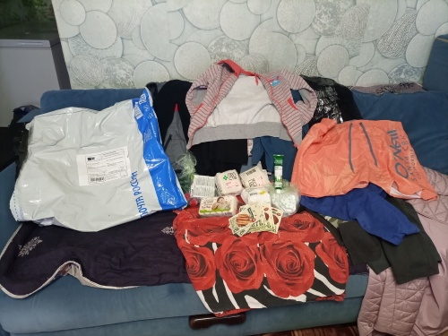 9 мая 2025г. 2 посылки:одежда на детей,средства гигиены,постельное белье и полотенца б/у,сладкое Отправитель: Наталья,Ирина,Дарья,Алексей