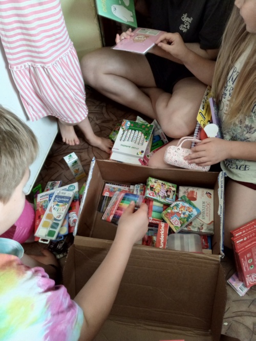 Здравствуйте, мы на днях получили посылки, в них были ботинки, куртки, штаны, футболки, кофты, целая коробка канцелярии: тетрадки, фломастеры, альбомы, раскраски, краски, карандаши. Мы были приятно удивлены посылкам и очень рады вашей помощи. Храни вас Господь. Спасибо большое.